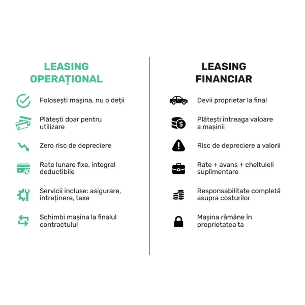 Companiile beneficiază și de deduceri fiscale, dar și persoanele fizice pot obține avantaje prin simplitatea și transparența contractului, mai ales în comparație cu un credit auto clasic.